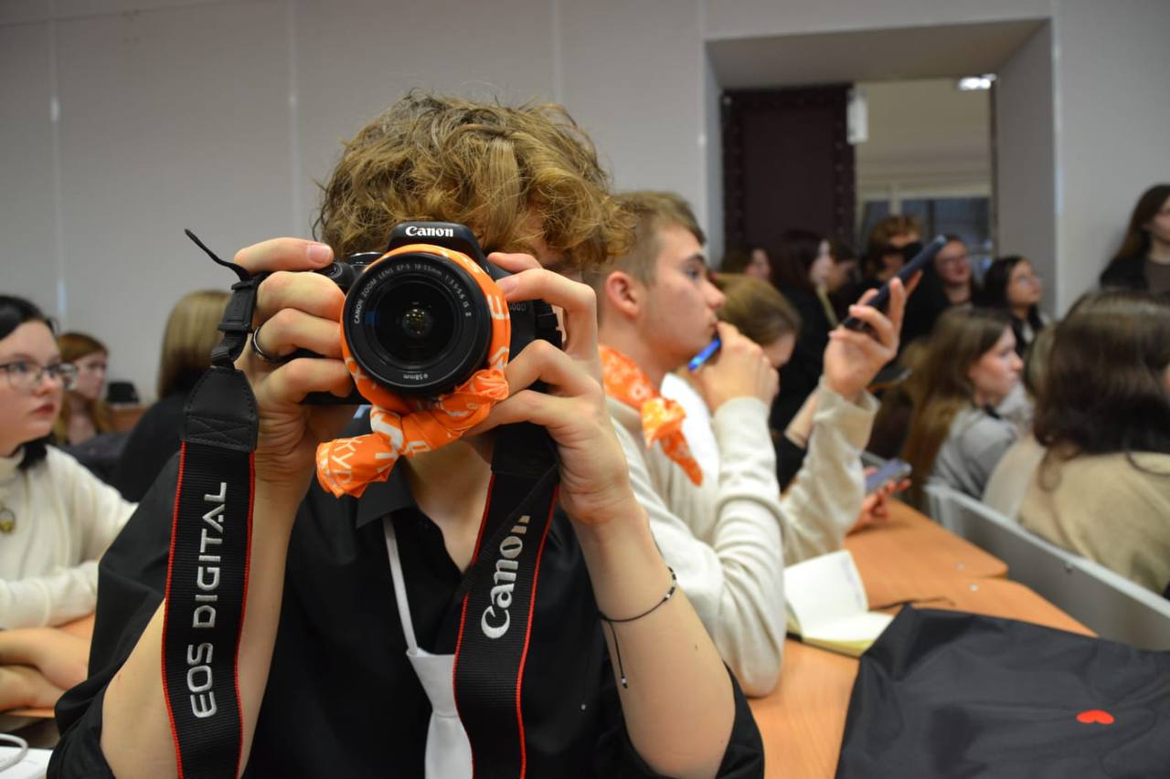 Первокурсники в оранжевых банданах вертят головами, прислушиваясь ко всему, ведь для них здесь все в новинку: пока незнакомые им преподаватели, старшие курсы, столь крупное мероприятие. И волнительно, и уже как-то по родному уютно: за два месяца ребята успели проникнуться атмосферой, царящей здесь.